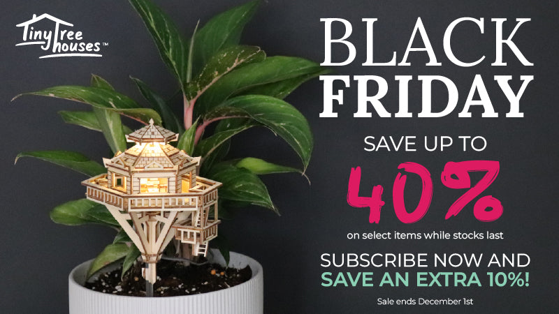 Every 3D puzzle comes with battery operated LED lights to give your Tiny Treehouse and plants a warm and magical glow.