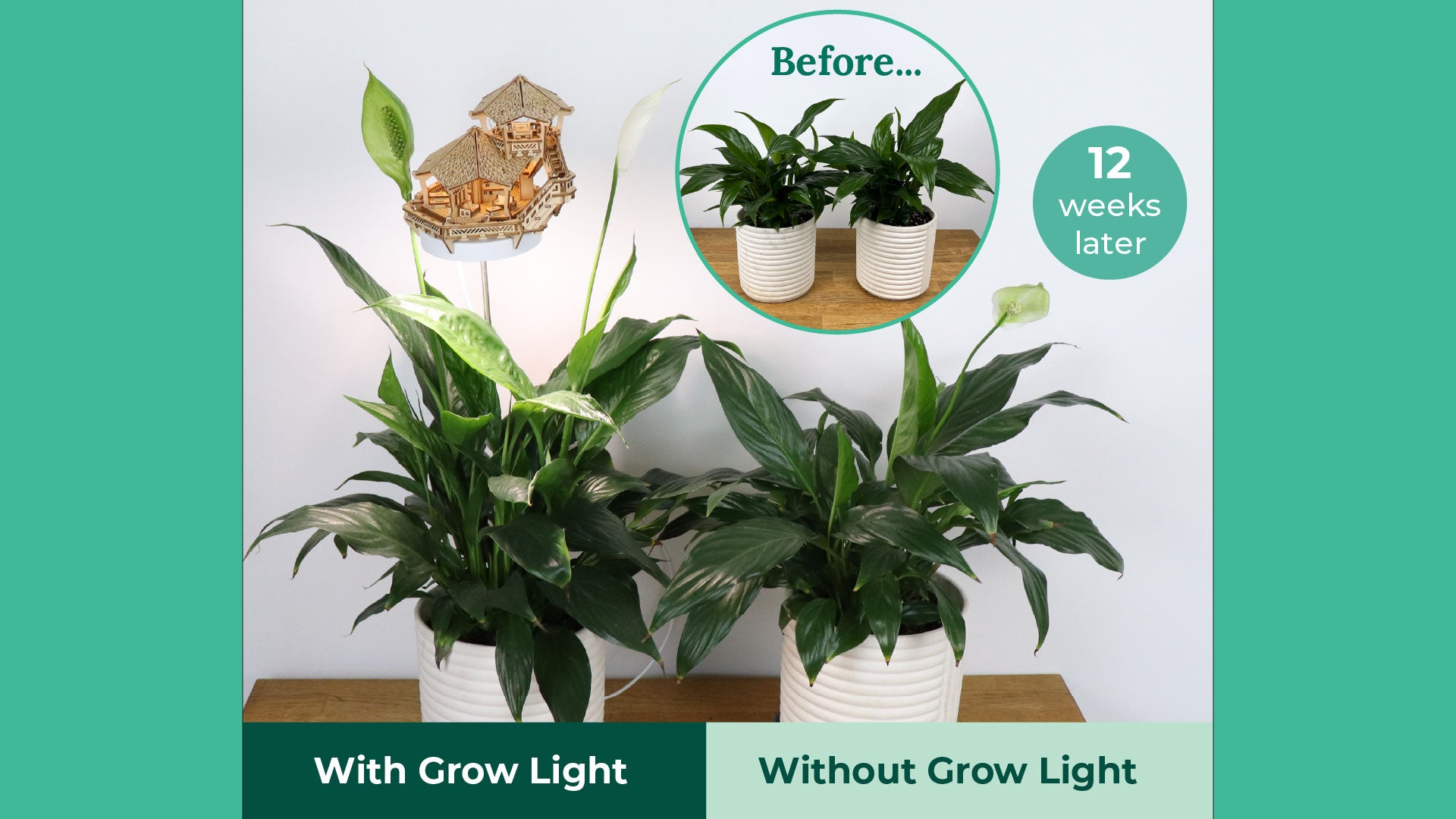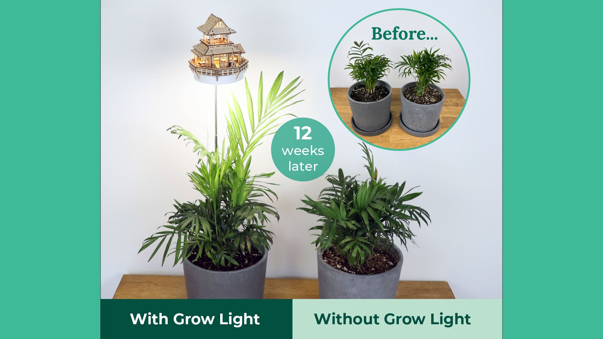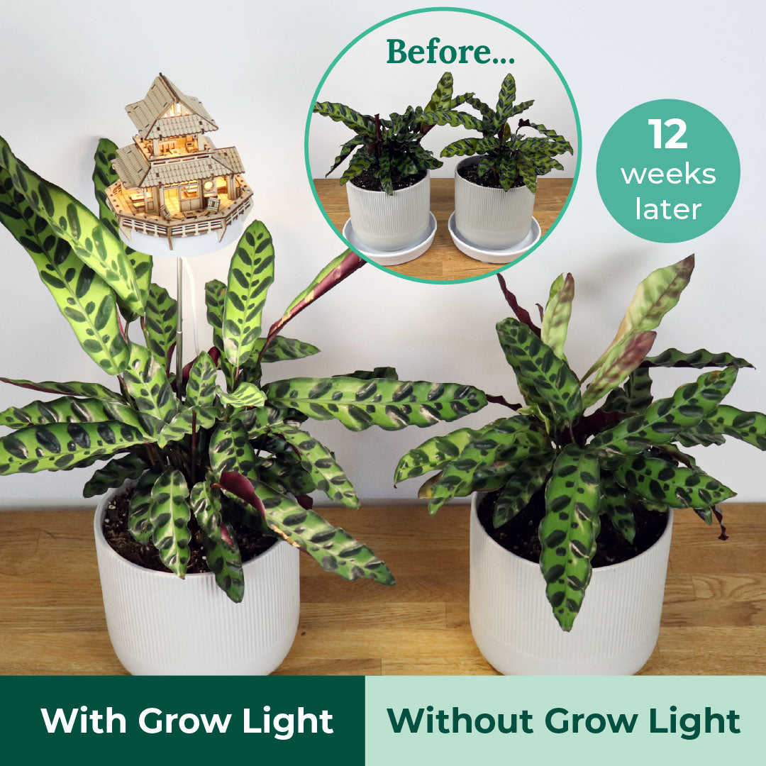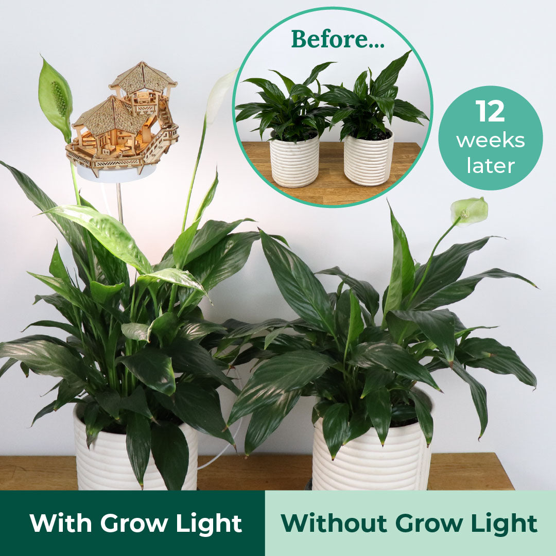 Take a look at the results! After 2-3 months, the plants grown under our full-spectrum treehouse grow lights are noticeably taller, fuller, and healthier than the ones grown without. These lights are designed to mimic natural sunlight - giving your plants the boost they need to thrive, even in low-light corners.