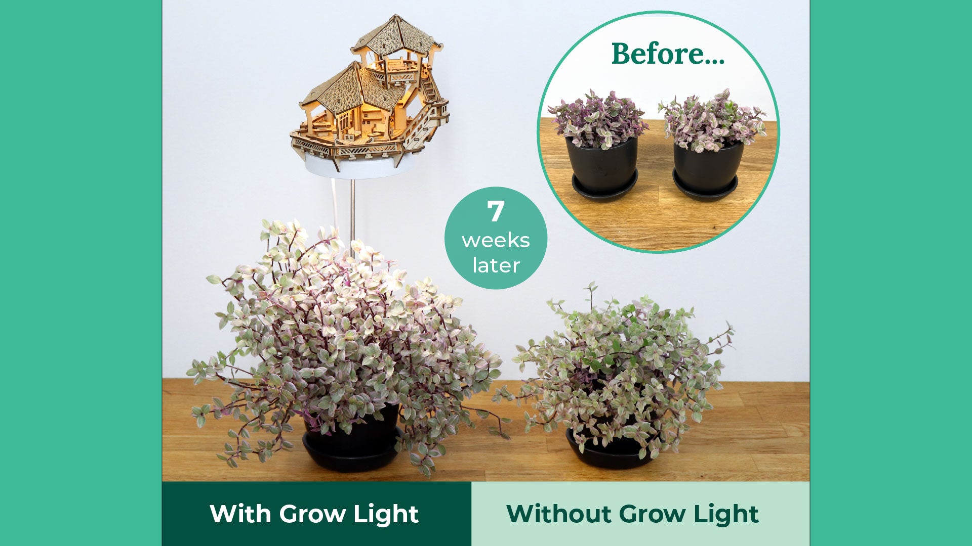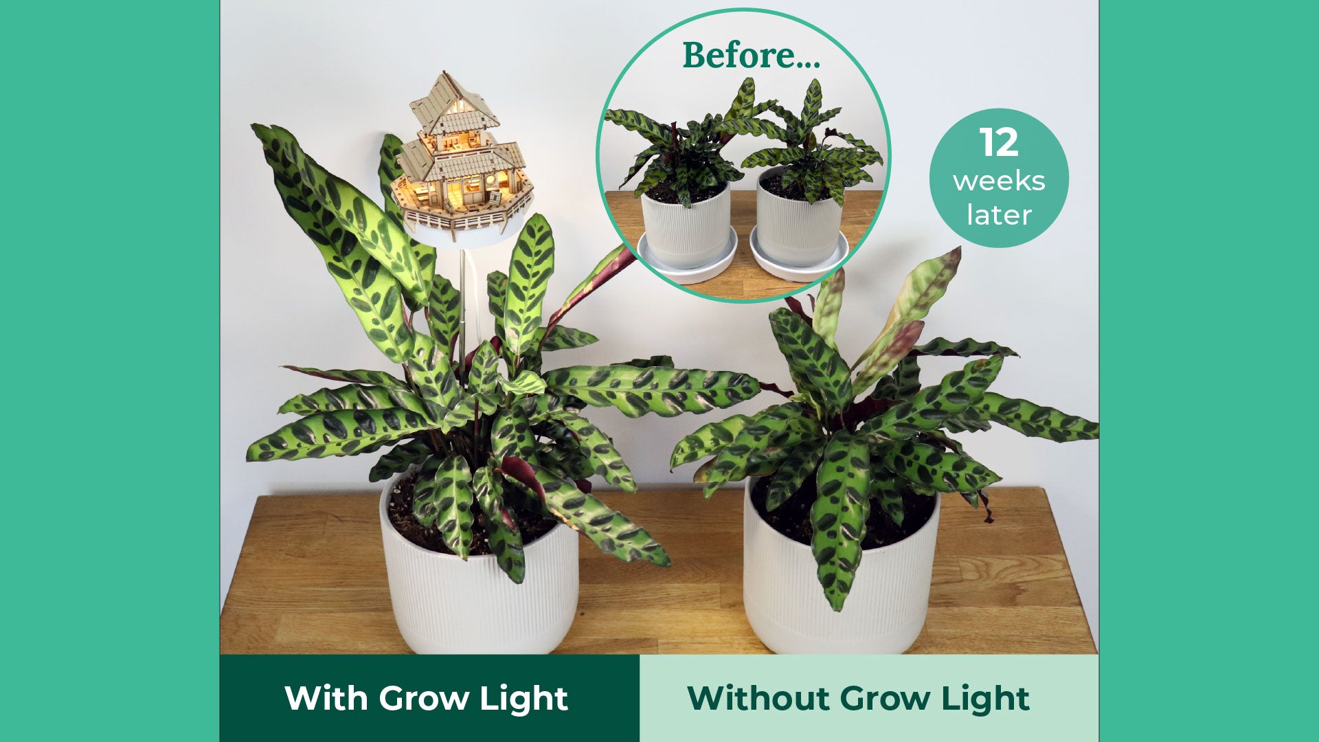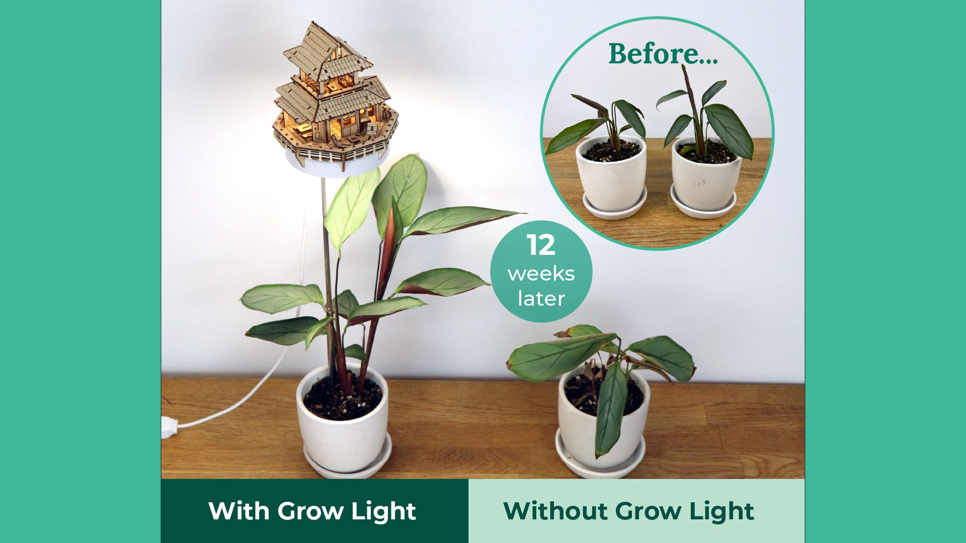 Take a look at the results! After 2-3 months, the plants grown under our full-spectrum treehouse grow lights are noticeably taller, fuller, and healthier than the ones grown without. These lights are designed to mimic natural sunlight - giving your plants the boost they need to thrive, even in low-light corners.